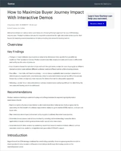 The Gartner report, How to Maximize Buyer Journey Impact With Interactive Demos (David Yockelson, Dan Gottlieb), highlights how interactive demos can accelerate sales cycles, reduce resource costs, and deliver value across the full buyer journey.