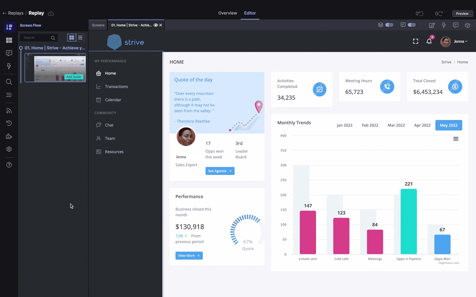Have complete control and editing ability in your guided product demos. Use our powerful and robust suite of editing tools to change dates, text, and images. Even if your product is not fully in production, you can capture screens of your product to showcase.